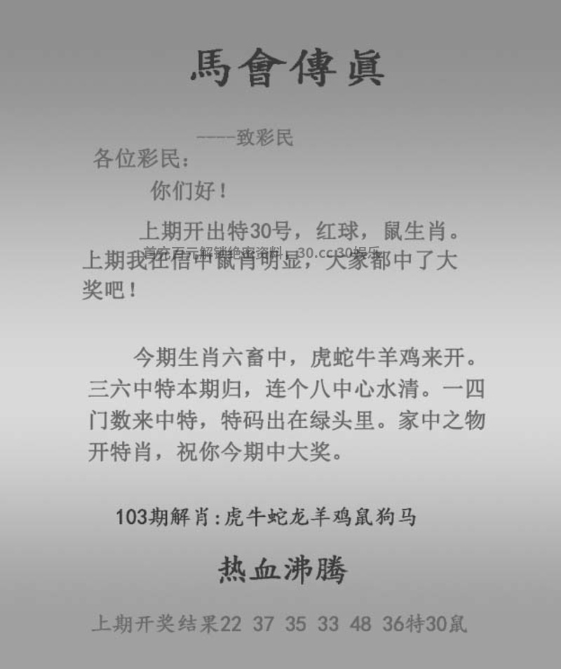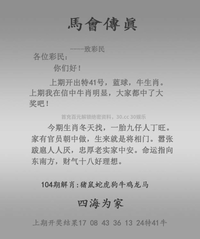 103期:男女②肖【男肖+蛇猪】开:牛41准