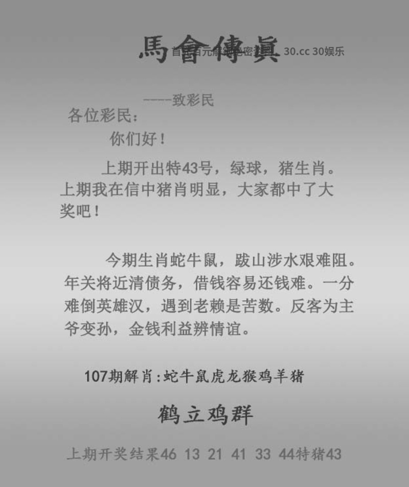 108期:男女②肖【男肖+蛇兔】开:發00准